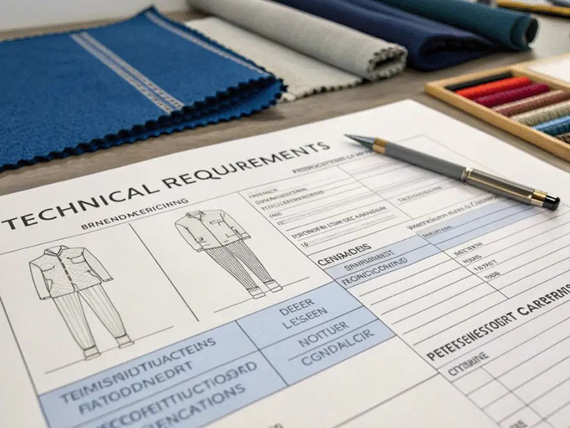 We source and confirm fabrics, trims, and colors to match your requirements.